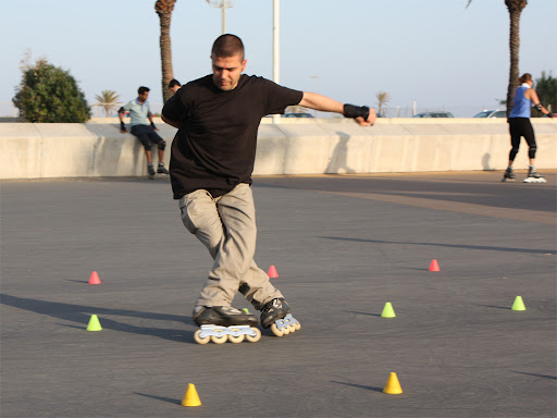 Con la intención de colaborar en el evento estuve haciendo de juez durante los dos días de competición, junto con Gregoire Pinto y David (que estuvo en la battle de Burgos). Por lo que nos explicó Greg, que tiene experiencia internacional, en las battles se valora principalmente la técnica y se considera también el estilo y la velocidad. Los trucos que se hacen fuera de los conos no cuentan (o cuentan como ‘bonus’, menos que un truco dentro de la fila de conos), influye poco que tires conos o que te apoyes en el suelo tras un desequilibrio (se supone que los patinadores van al límite). O sea, que si haces muchos trucazos variados, con buen estilo y a gran velocidad, se tienen muchas posibilidades de victoria.